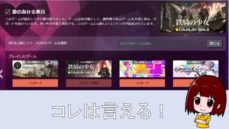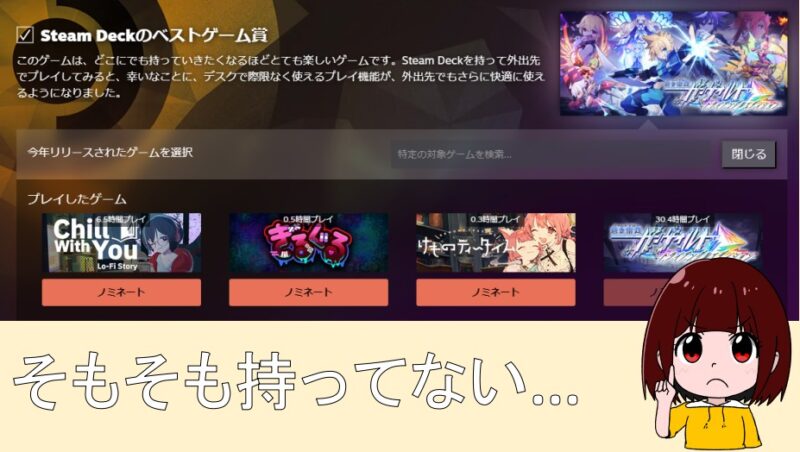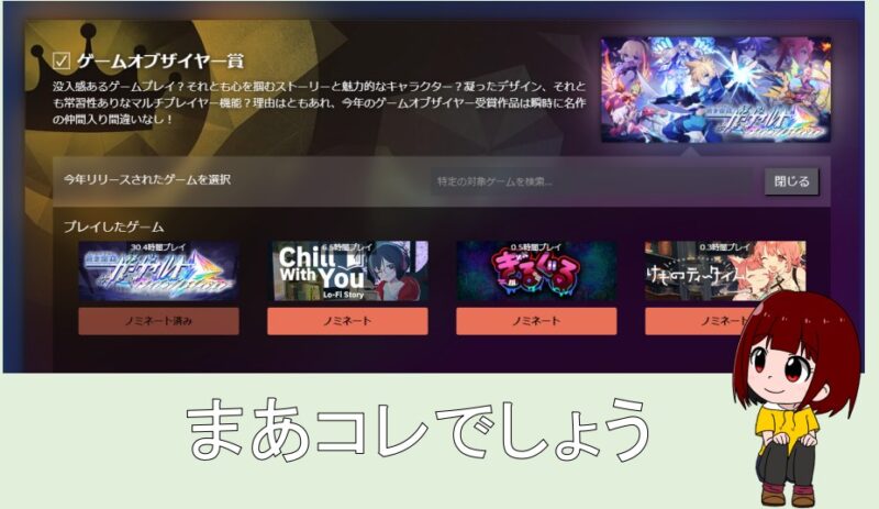 未プレイ&未購入作品選ぶより、自分でコレだ!と決めて購入した作品をノミネートしたいですよね?