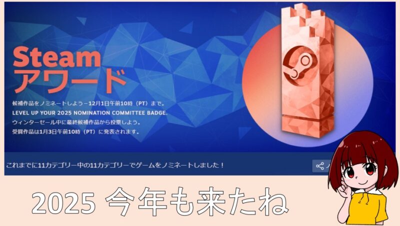 というわけで、Steamのセール情報に目を通してたら恒例のこの企画が始まってたので投票してきました!