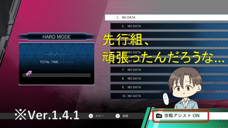 ※なお、そのセーブデータで攻略アシストONで始めるとOFFに戻せない。