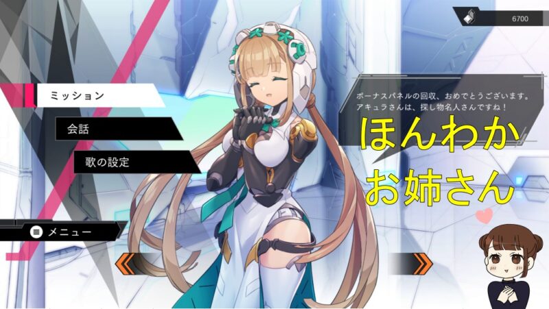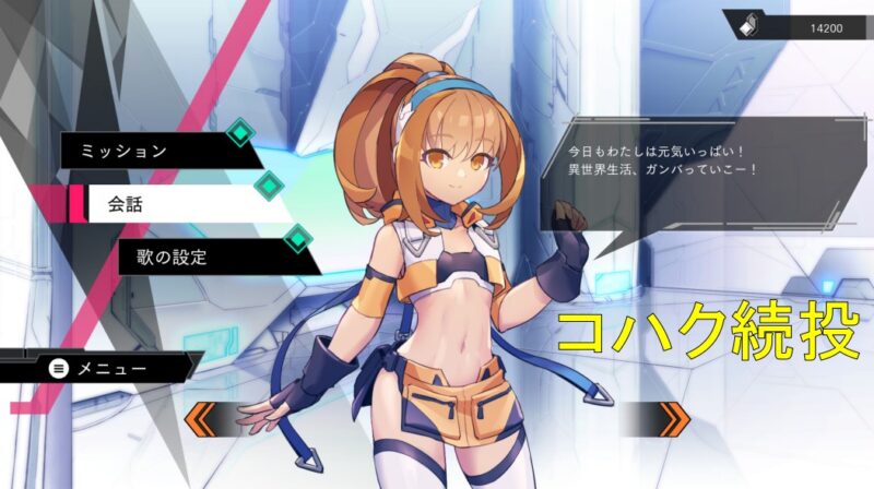 今作もミッション前のメインメニュー画面にいるのはマイナーズのコハクさん!